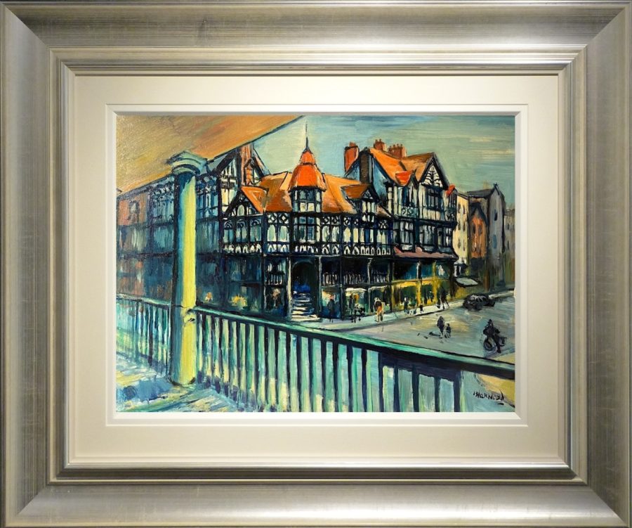 Upon receiving the email image of the painting, it was clear that we were looking at an untouched and rare painting of Chester city centre, a subject matter that was not often painted by Isherwood and in a detailed style that was only seen in his early paintings dated from the 1950s and 1960s.