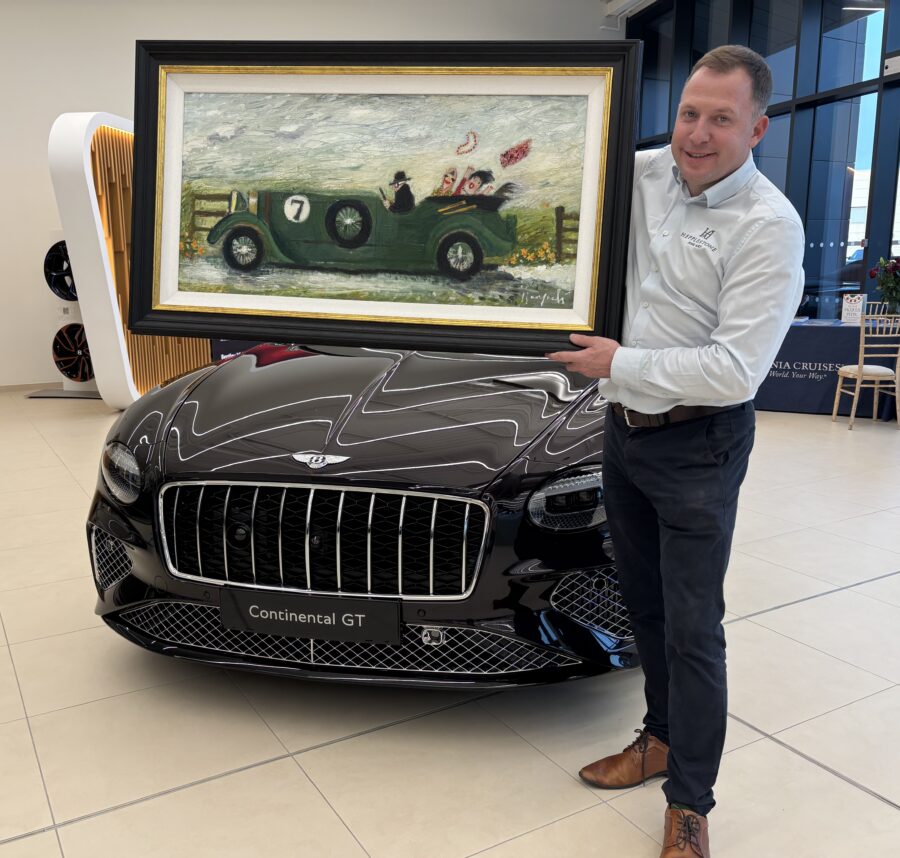 Last updated onLast week Lucy Manfredi opened another new chapter in her exciting career with her first automobile inspired paintings which were launched at a glamourous evening at HR Owens Bentley showroom in London.