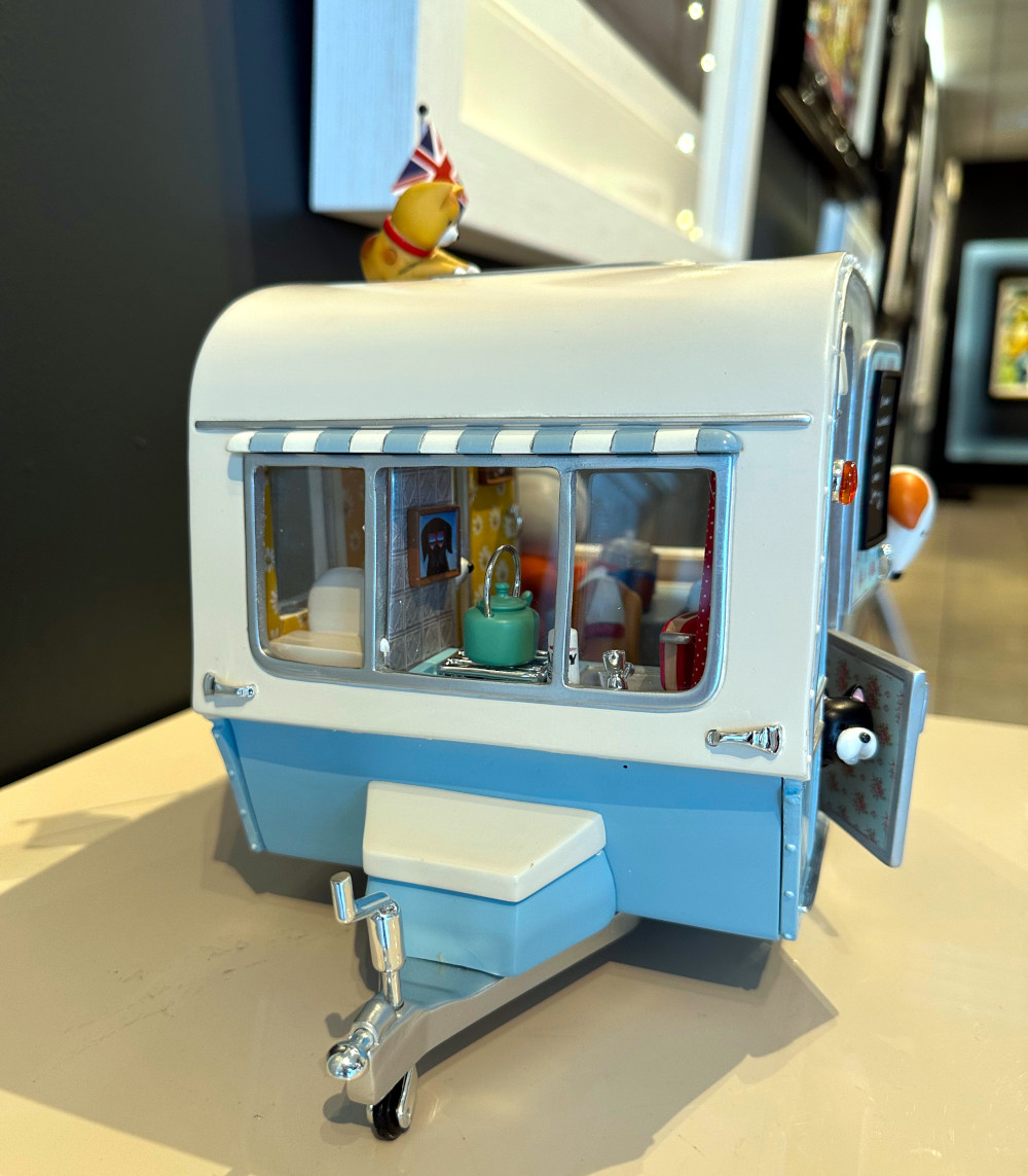Part of the Pieces of Love collection, ‘The Great Escape’ is a fine art sculpture by popular British artist Doug Hyde. The piece, which measures 11 x 8” and has been released as a limited edition of 350, sees the artist’s popular pet pals (cat and dog!) setting off for a summer holiday in a pale blue vintage caravan complete with retro flowered wallpaper and striped awnings. A familiar picture of nostalgia for many, that is sure to raise a smile.