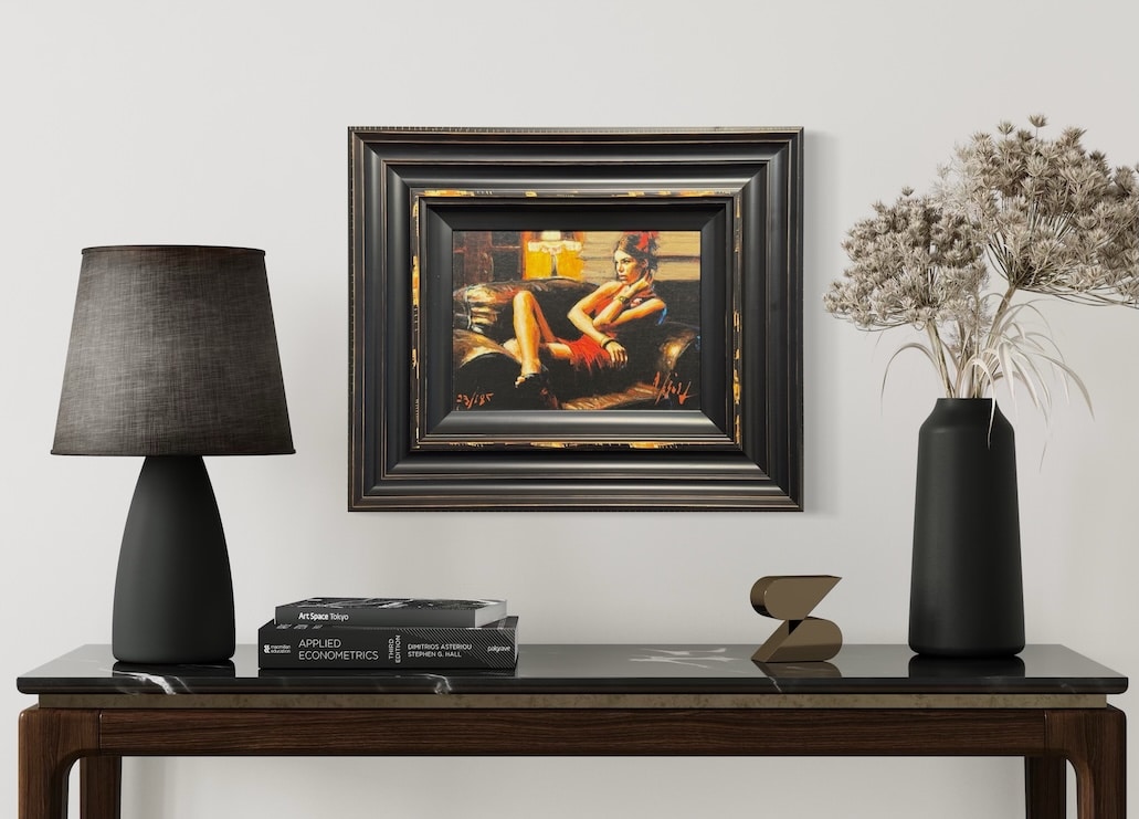 A rare and previously sold out limited edition print by Argentinian artist Fabian Perez title Linda in Red III. We are thrilled to have just one copy available beautifully framed and complete with certificate of authenticity.