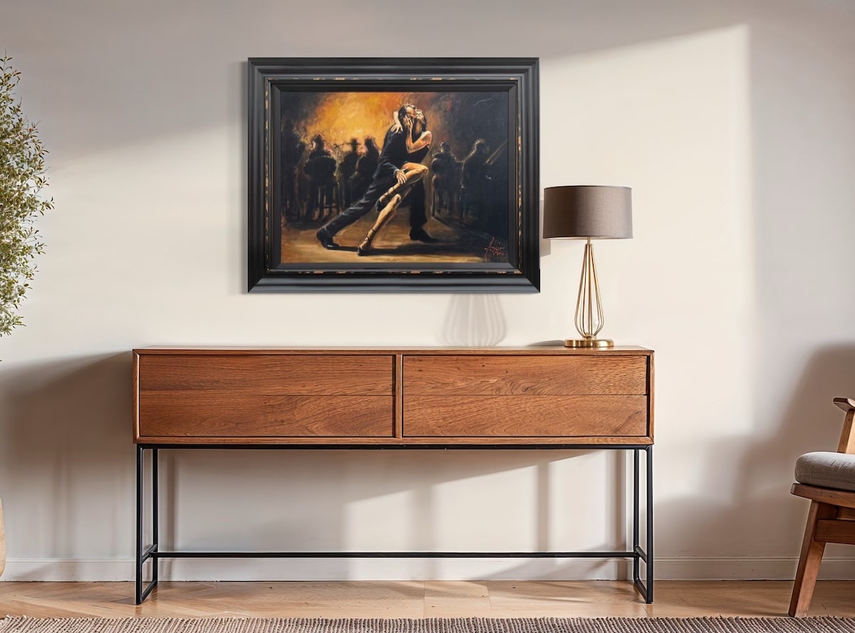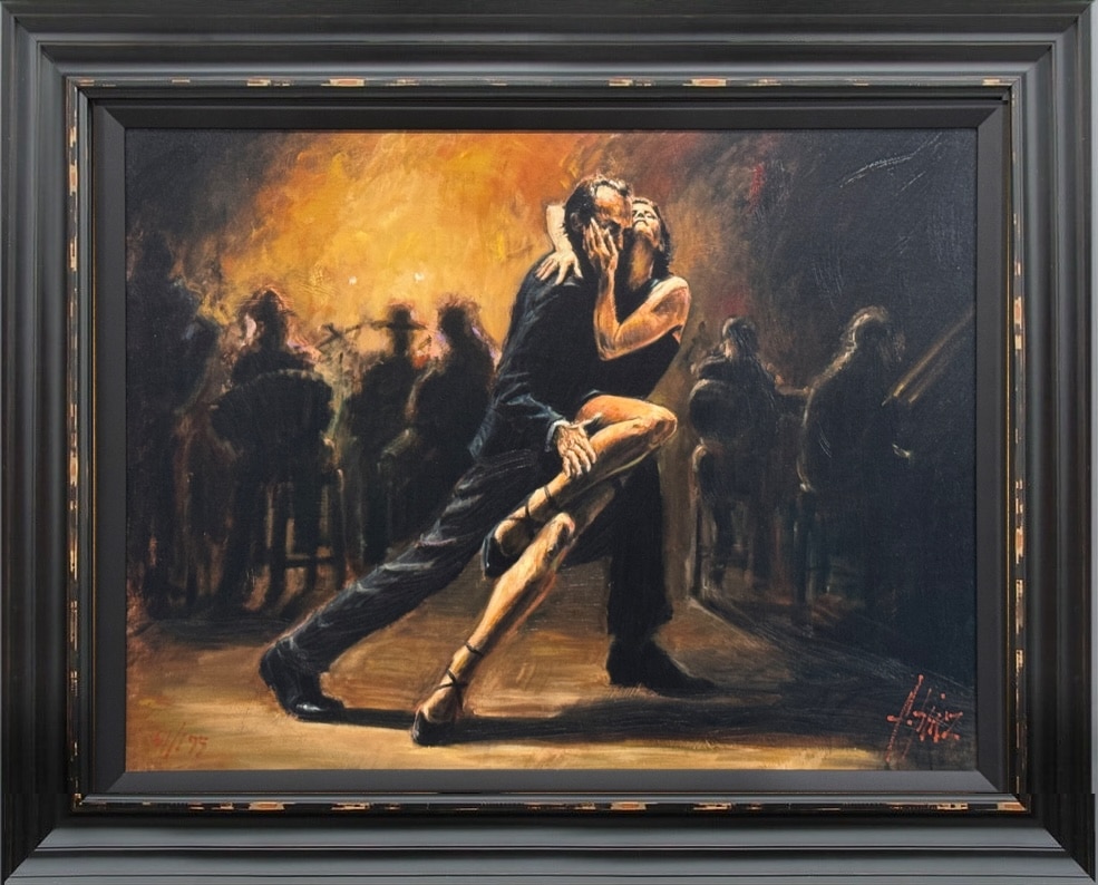 The most iconic Tango image by the Argentinian art sensation Fabian Perez. Known and internationally collected for his atmospheric dance scenes, this is without doubt his most well known and sought after edition of the genre. Capturing the essence of the dance, this hand embellished limited edition print is now incredibly rare and almost never comes to market. We are thrilled to have just one copy available beautifully framed and complete with certificate of authenticity.