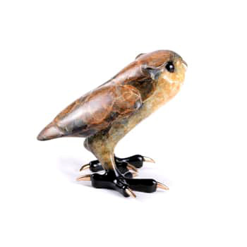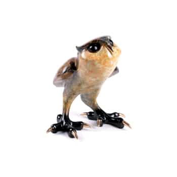 Tim Cotterill delights, once again, with the release of Nelson, his charming new owl. A selectively patterned, multi-hued, earthy patina captures the essence of Tim’s favored subject matter. Exuding the traits and demeanor expected of the classic Cotteril owl – intelligence, wisdom, mystery, curiosity, and, of course, the exaggerated feet and talons – Nelson takes flight. Welcome to The Cotterill Parliament, Nelson.