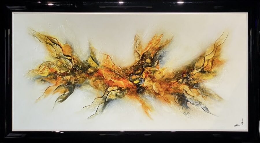 A striking original abstract painting by German abstract artist Gisela Ueberall. Supplied professionally framed and signed by the artist in a black gloss frame. Alternative frames are also available so please enquire and note that this painting can be hung in portrait or landscape format.