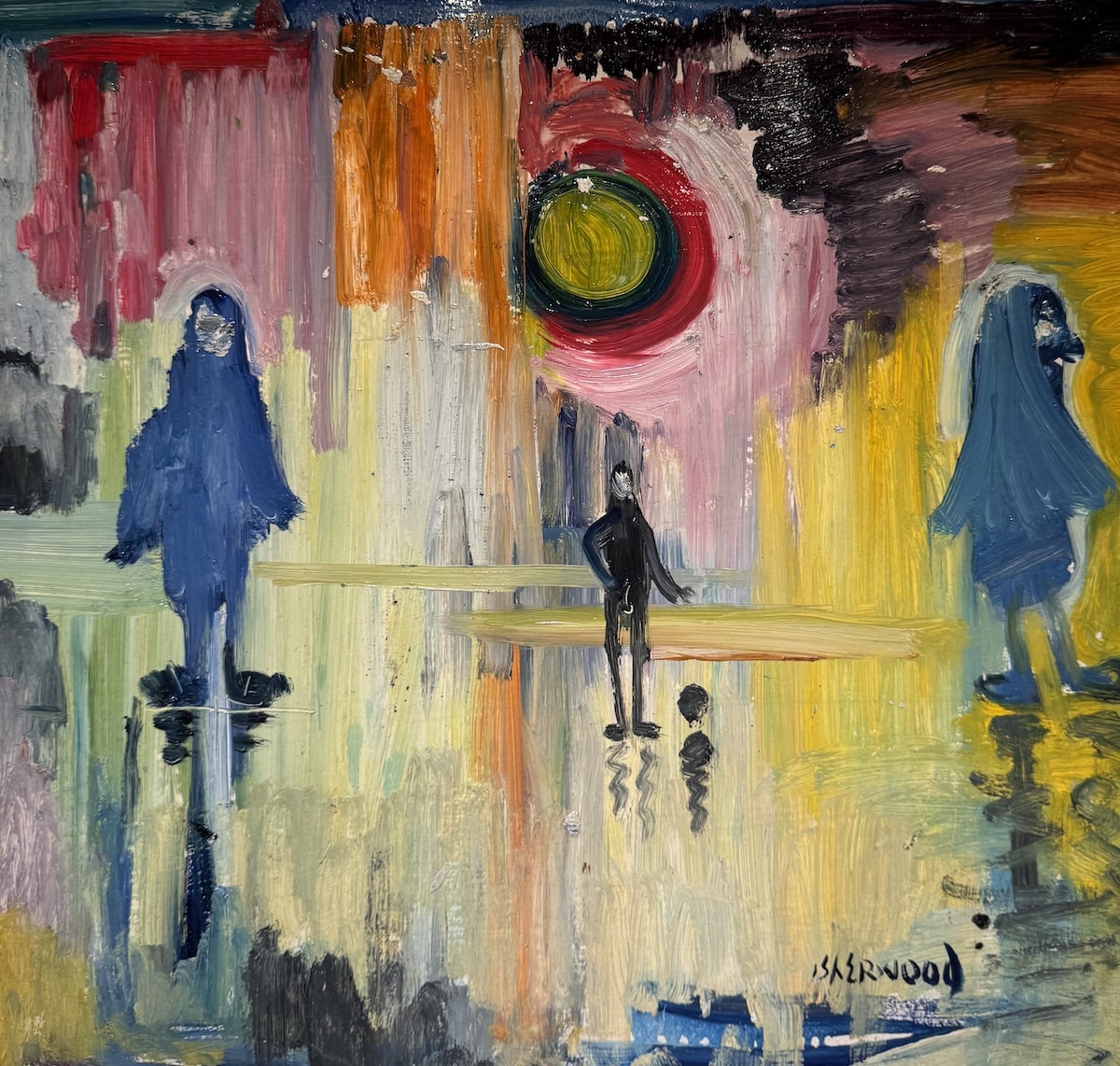 Oil on board painting by the late James Lawrence Isherwood demonstrating the artists wonderful eye for colour and unique interpretation of the working class northern figures.