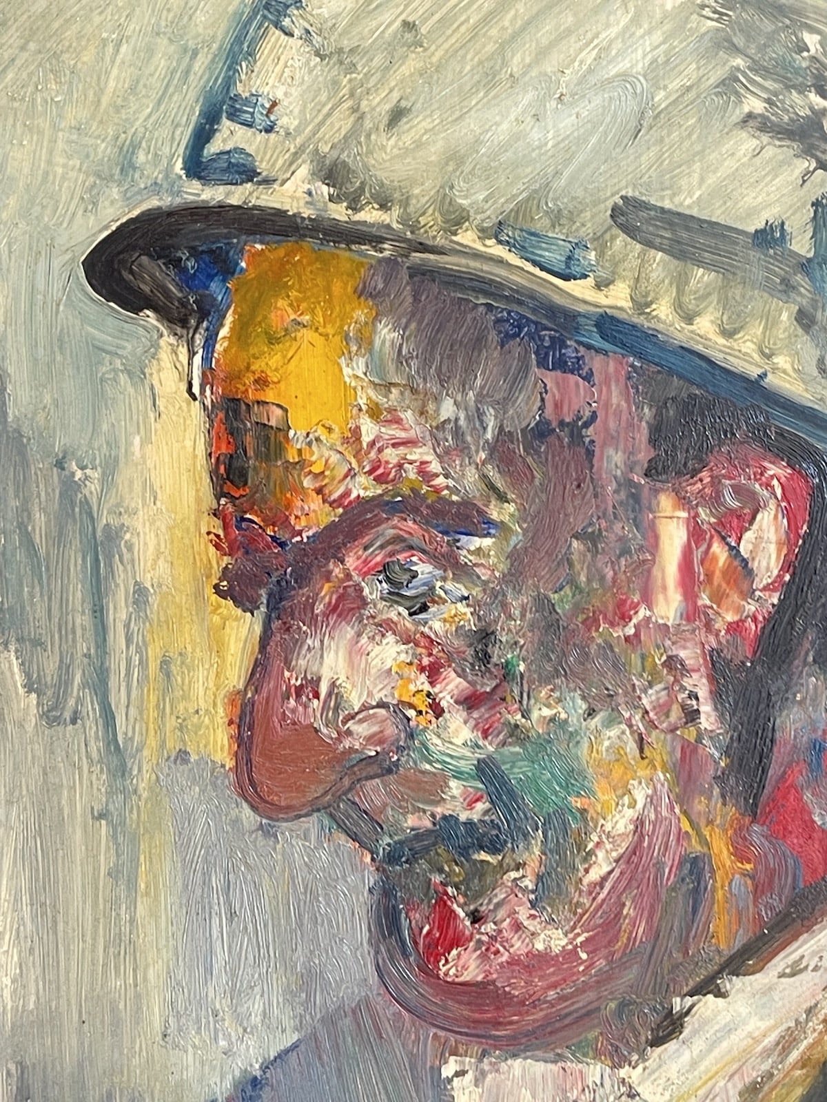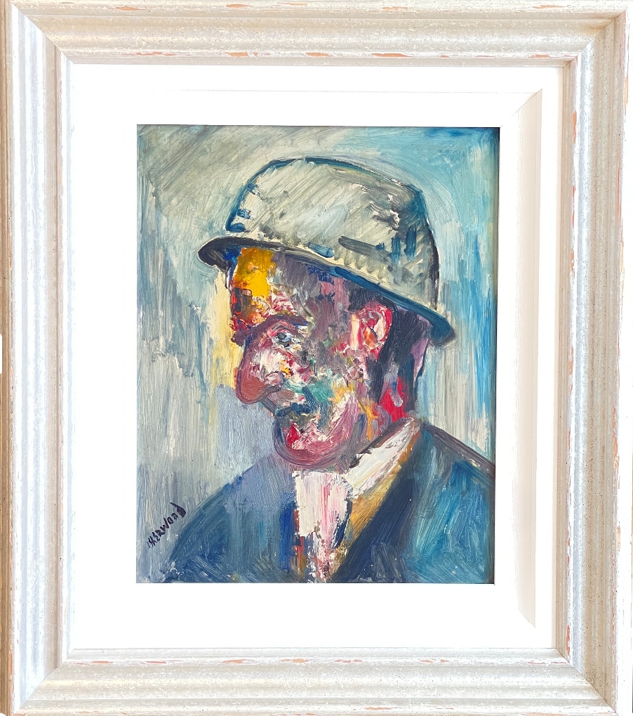 A rare original painting by Isherwood depicting a miner and titled to the reverse ‘The Dataller’. Dataller refers to a worker paid by the day and is a wonderful social commentary of the working patterns of the society at the time.