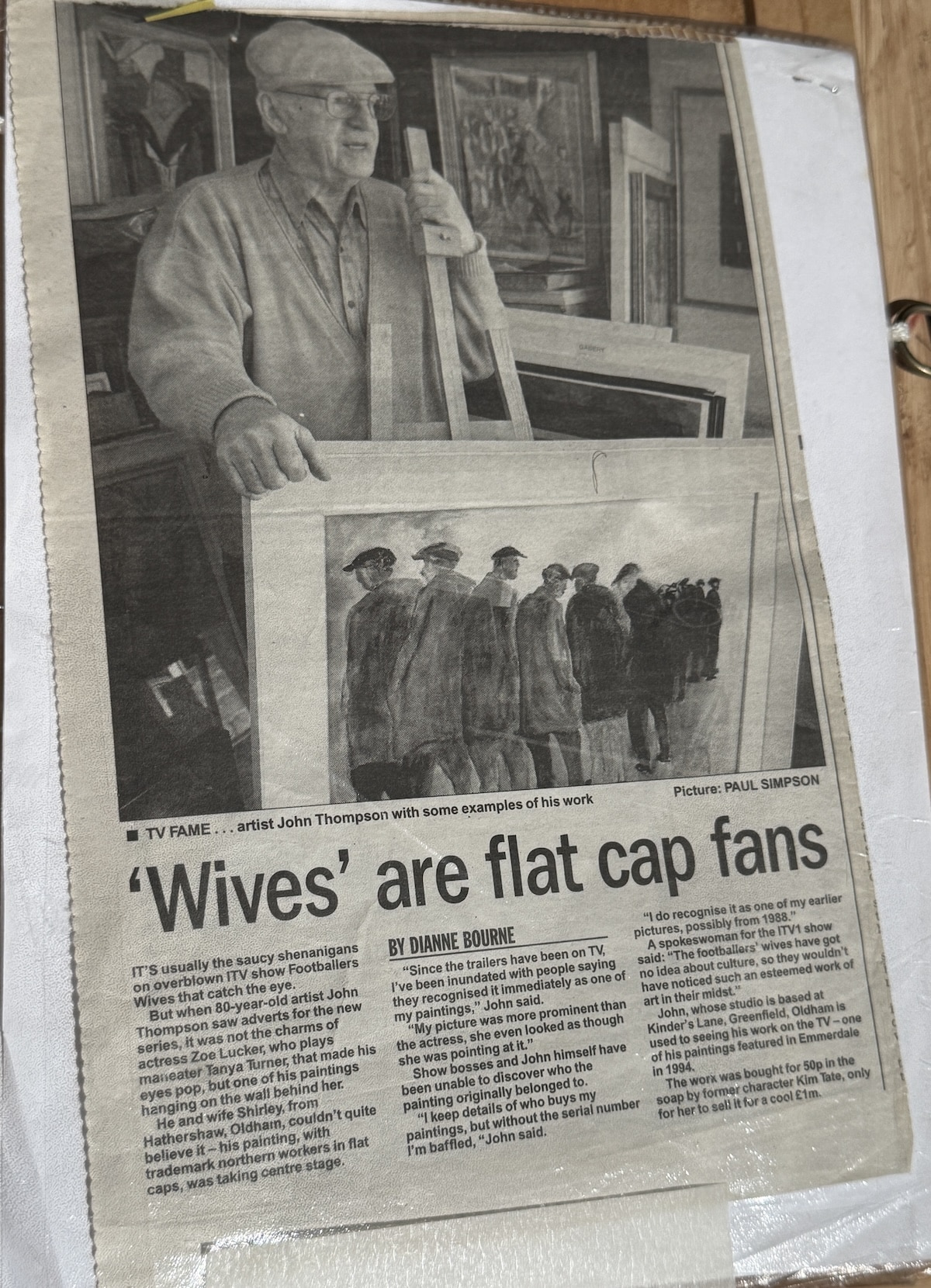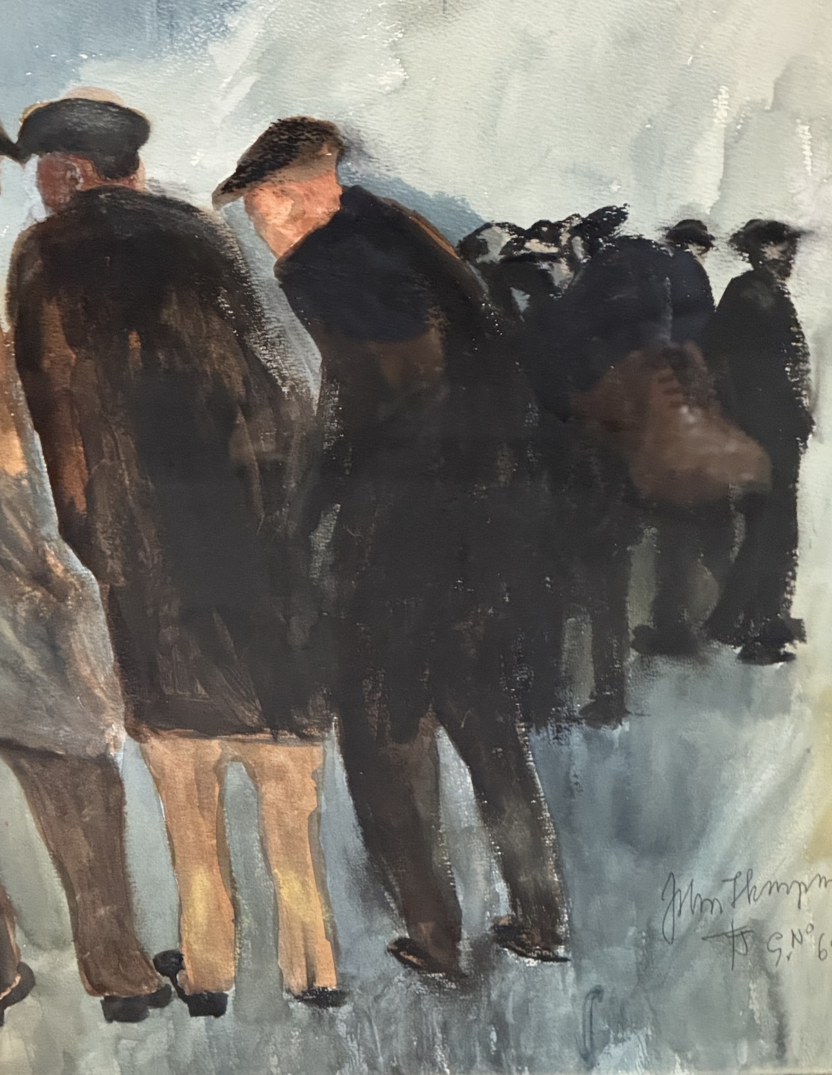 One of John Thompson’s largest and finest compositions. This wonderful signed original work comes with a news clipping about the artist with John illustrated with this particular piece.