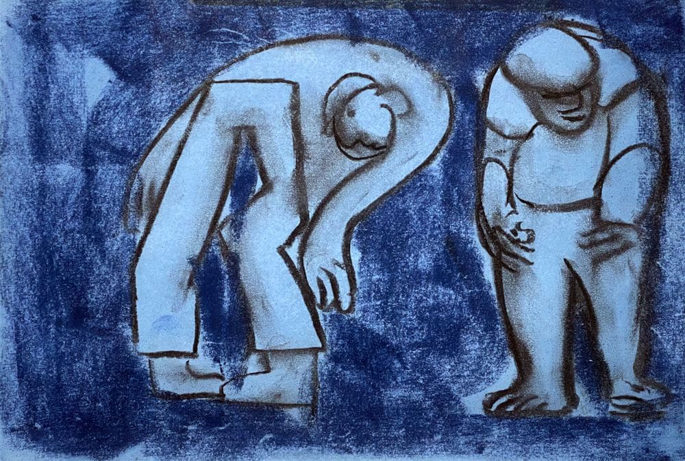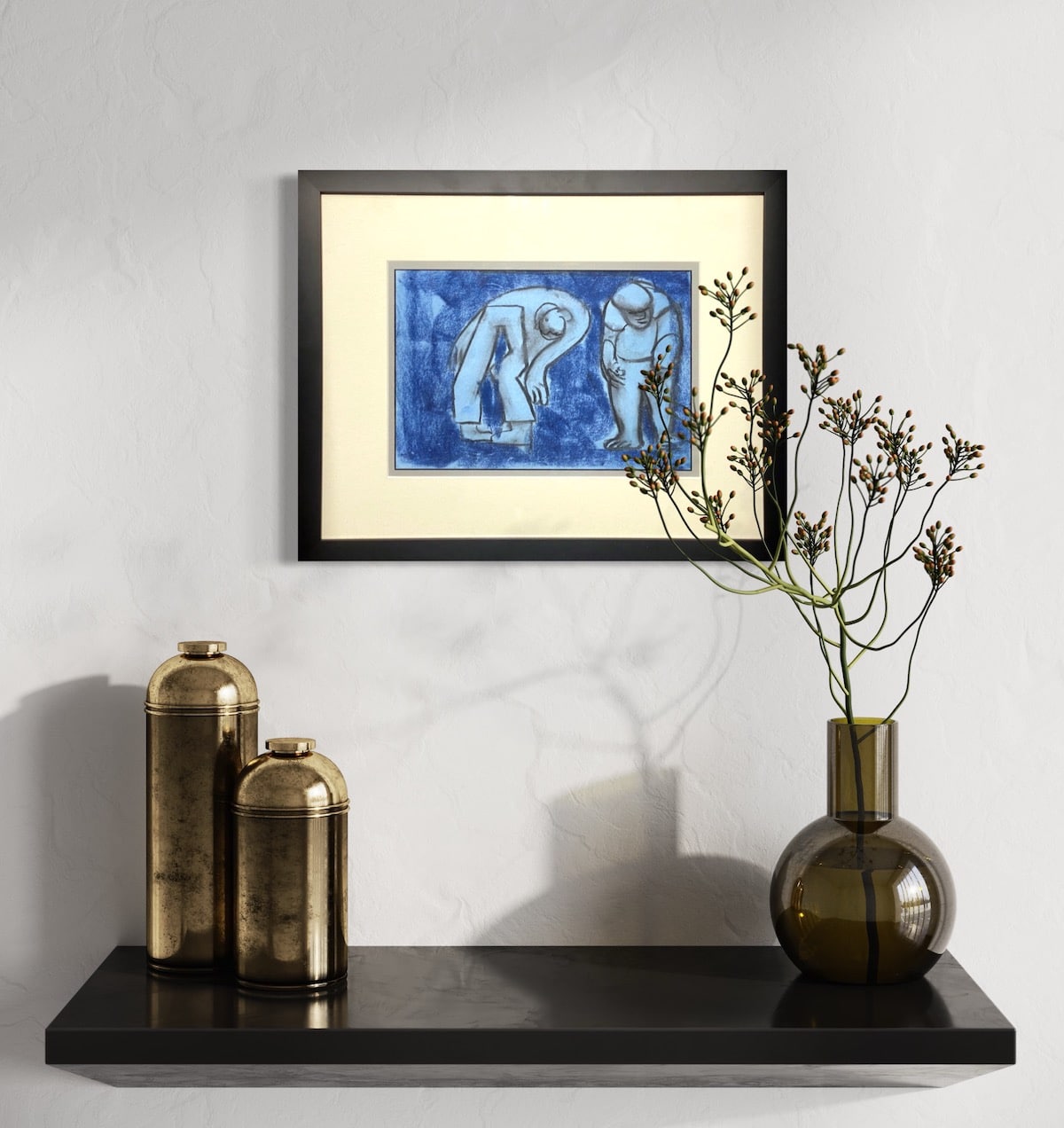 A wonderful original work by the late Oldham artist John Thompson. A fntasitcally quirky mixed media wokrs on paper, featuring the workning class figures that Thompson became so well collected for.