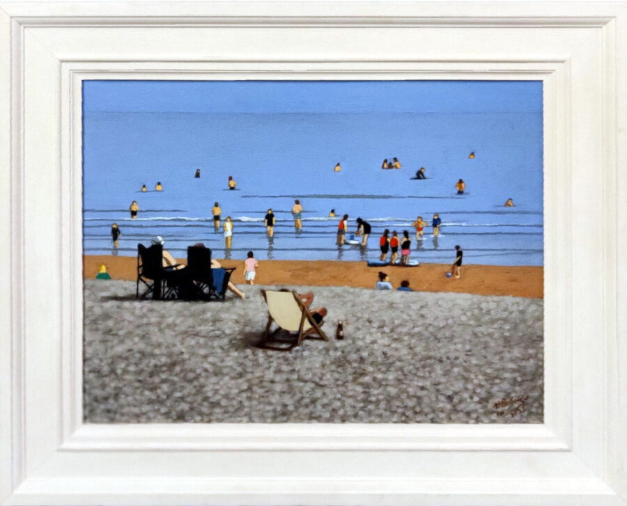 Everybody is making the most of the sunshine down at the beach! A lovely visual, offered framed and signed by the artist.