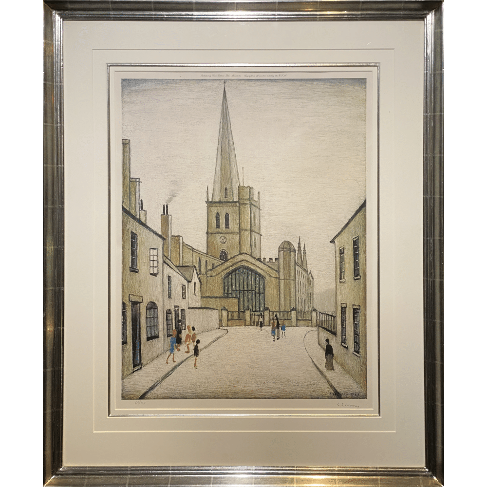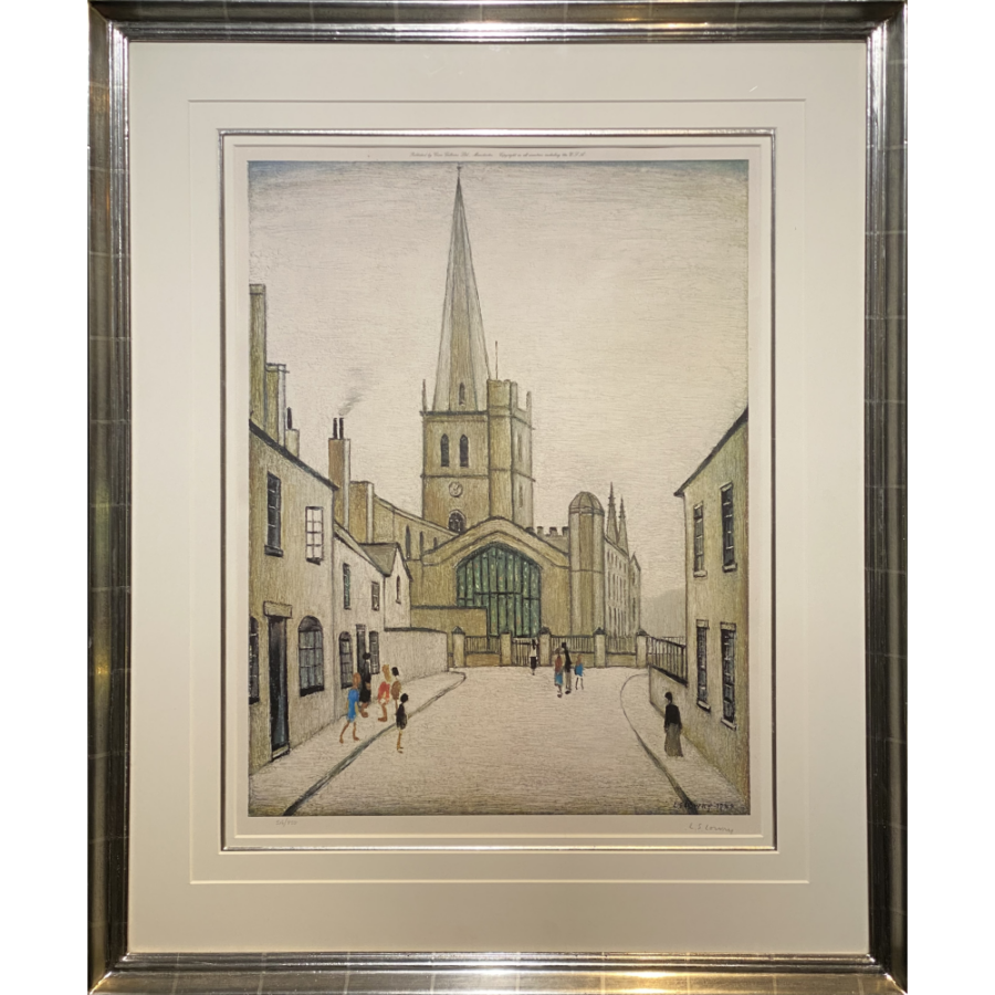 A fantastic condition signed limited edition L S Lowry print entitled ‘Burford Church’.