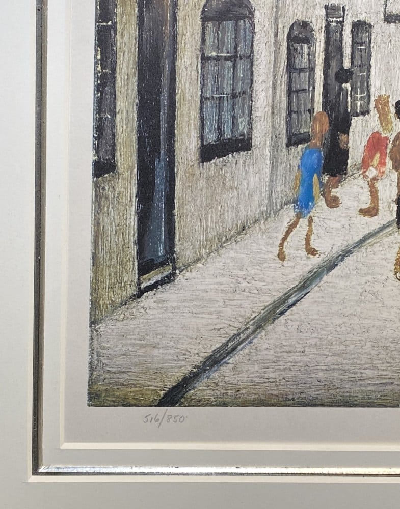 Offered professionally framed in white gold leaf with UV protective glass, hand signed in pencil by Lowry. From an edition of only 850, this example being number 516.