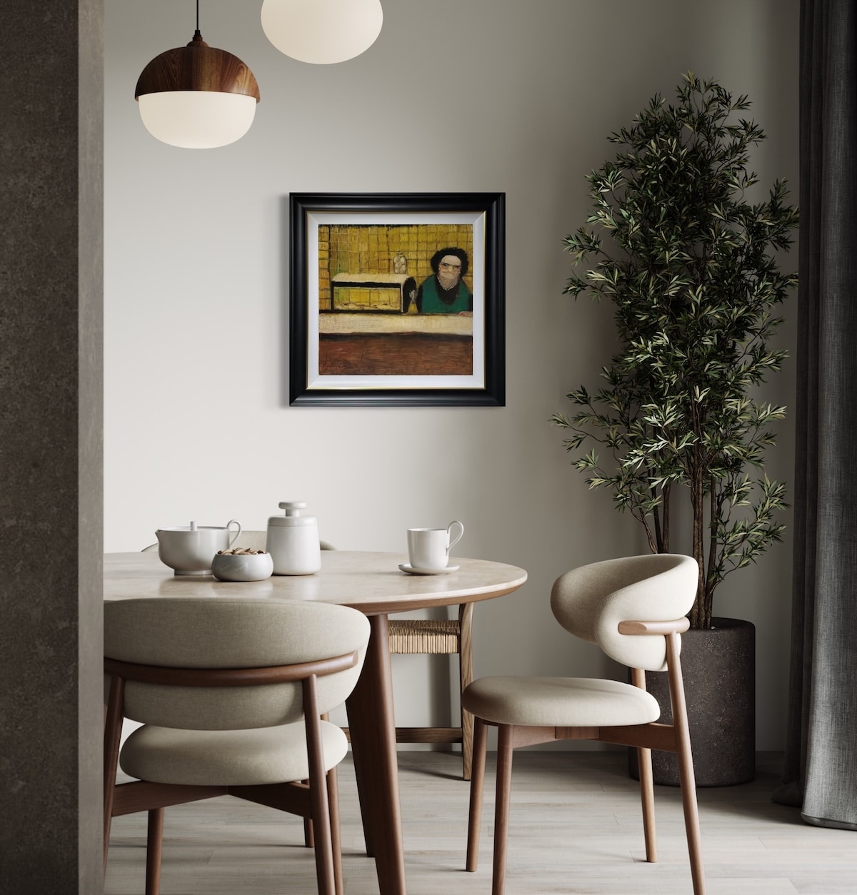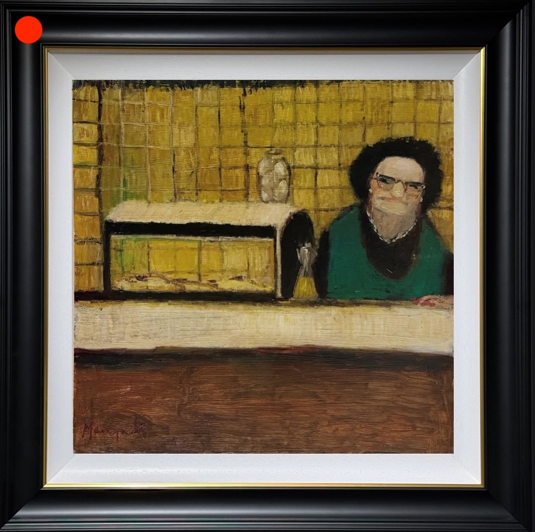 From Lucy Manfredi’s countdown to Christmas collection for 2025, here we have the wonderful original oil on board painting ‘10 Fish are Frying’.
