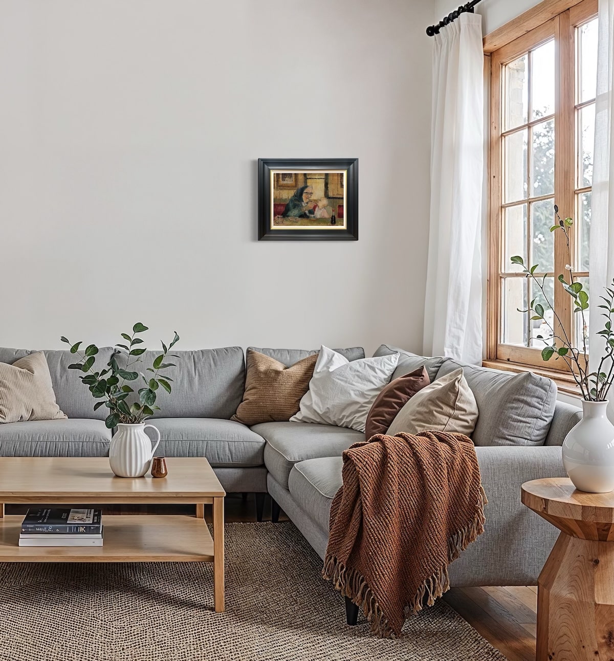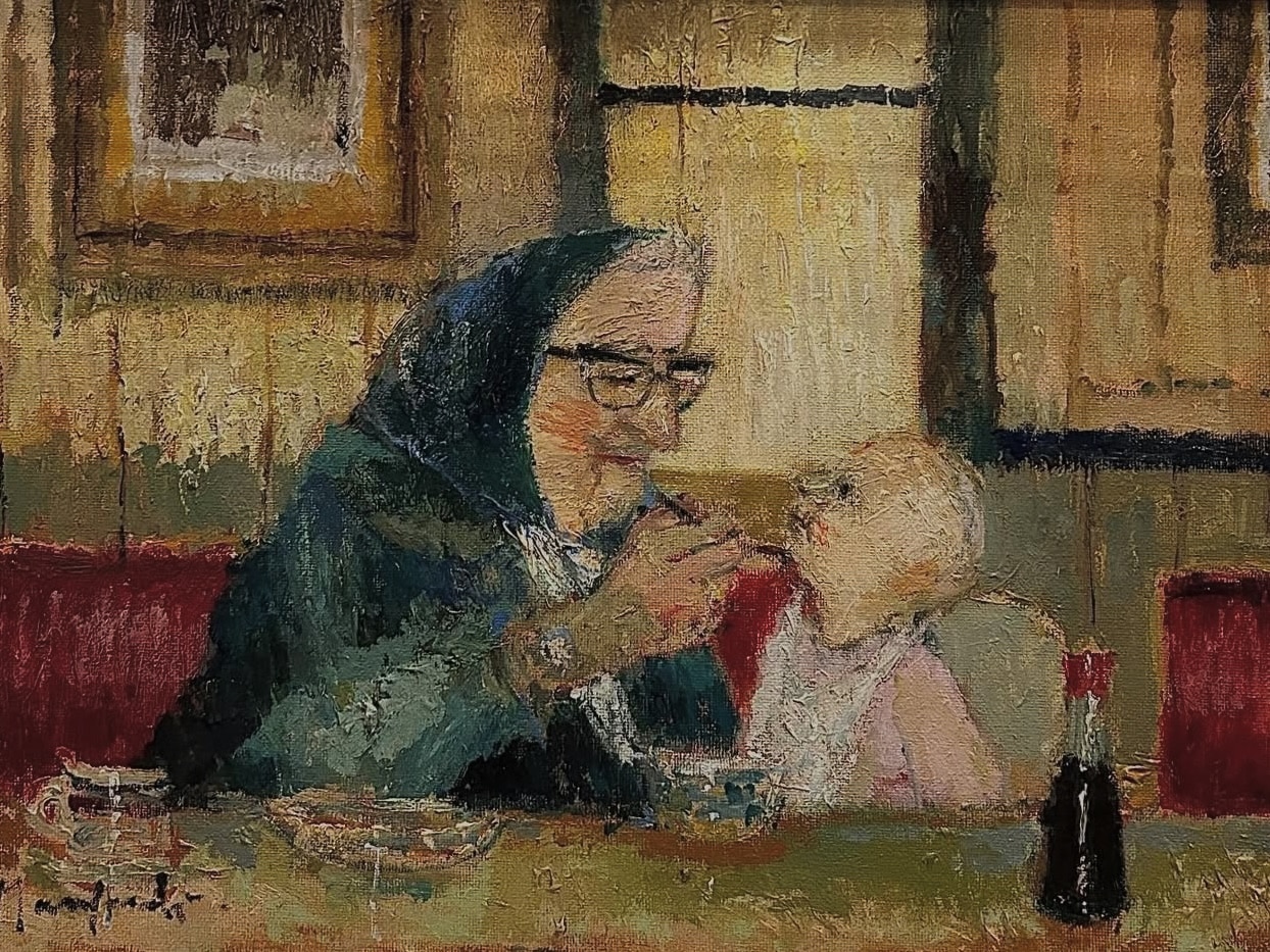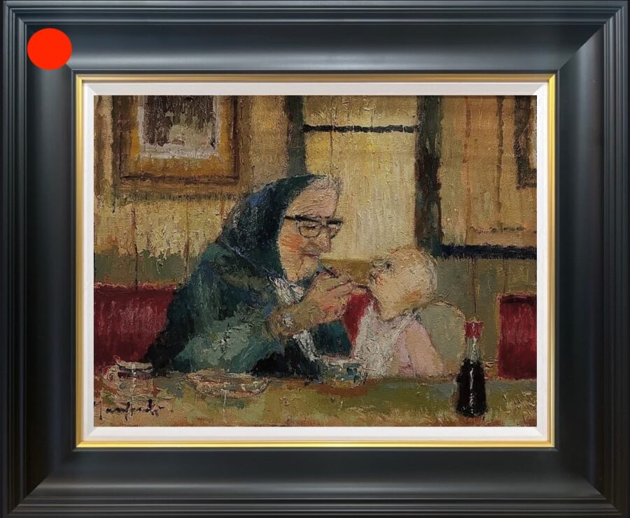 An rare scene from Lucy Manfredi of Nana feeding the little rascal with porridge. Full of nostalgia, Lucy once again captures the warmth and sentimentality of bygone days.