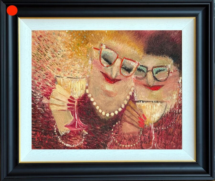 The ladies are on a sparkling night out in this lovely work by Northern Artist Lucy Manfredi. This is one of three new pieces by the artist which we are delighted to be showing in our galleries at Heskin and Wilmslow, and which are sure to be a big hit with collectors!