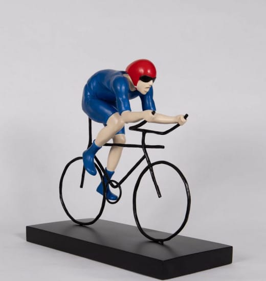 The racing cyclist presented in Mackenzie Thorpe’s sculpture speeds along, sucking in air as he powers towards the finish line. Is he leading the race or slipstreaming another competitor while awaiting the chance to overtake? The combination of human physicality and mechanical know-how inspired Thorpe to create a collection of images to celebrate the Tour de Yorkshire in 2019, and ‘The Fastest’ was the first ever sculpture to be part of the race collection.