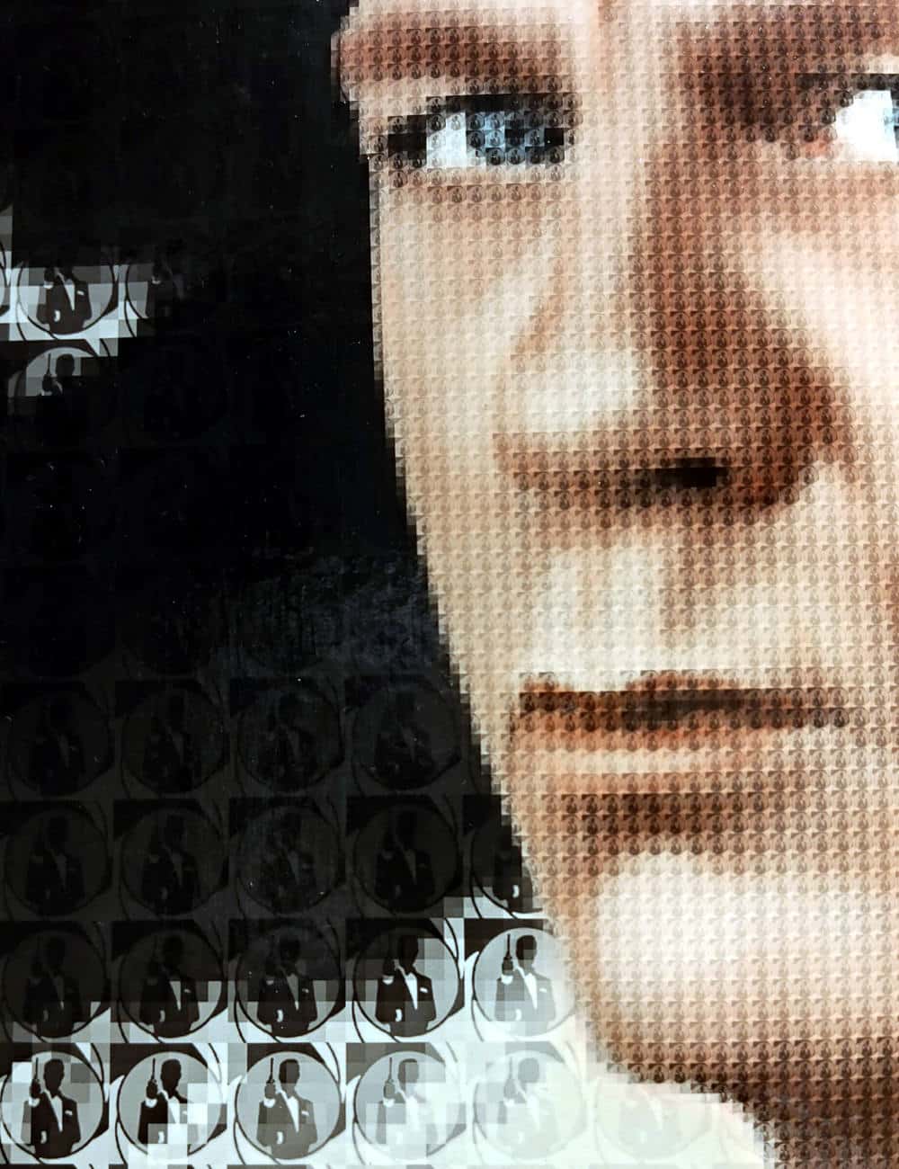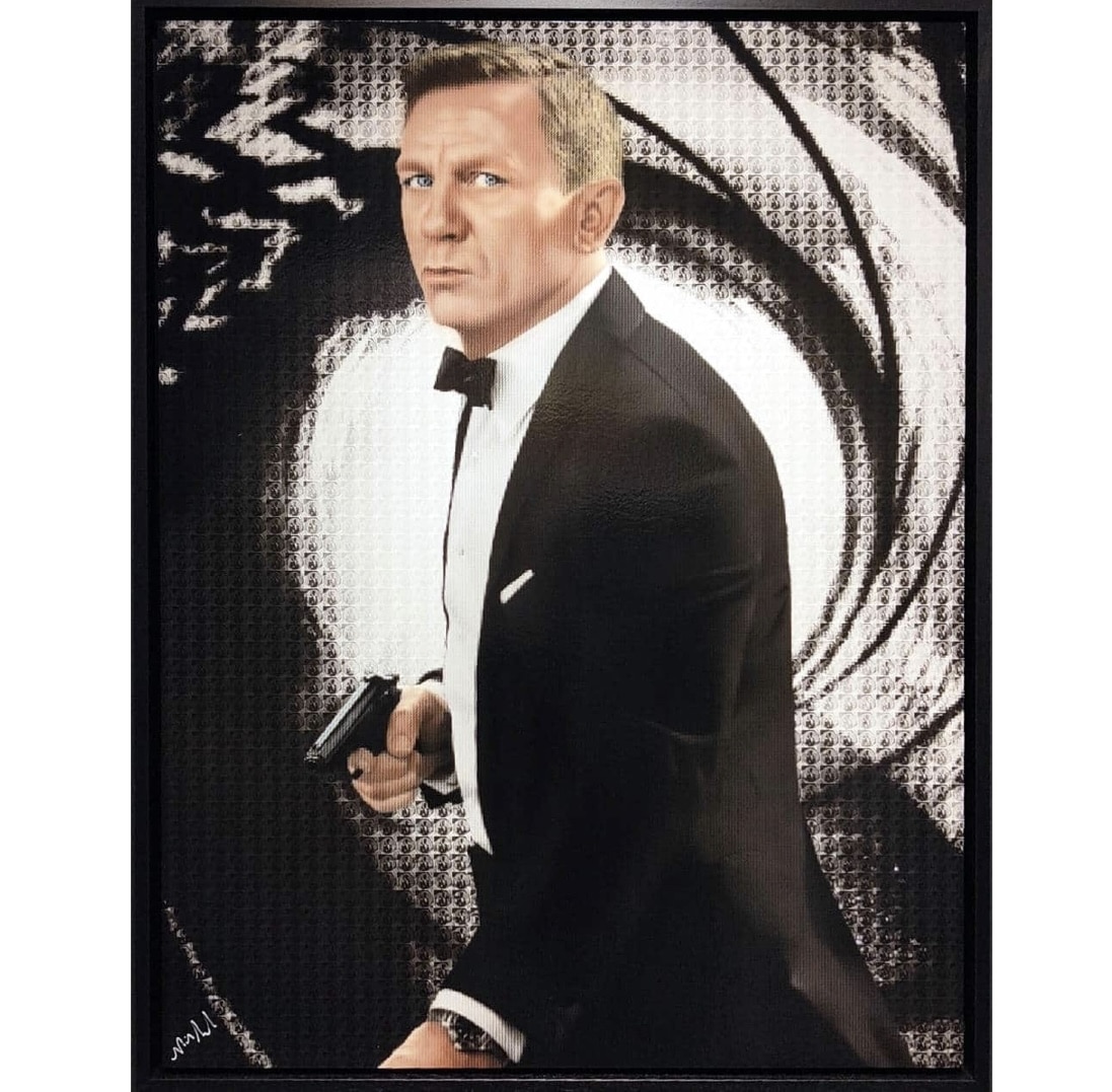 This striking image of Daniel Craig’s James Bond is masterfully created by artist Nick Holdsworth using airbrush and his incredible pixelation technique. Spending hours digitally creating the image with hundreds of lip pixels, Nick then goes to work with his airbrush to create the finsished original work.
