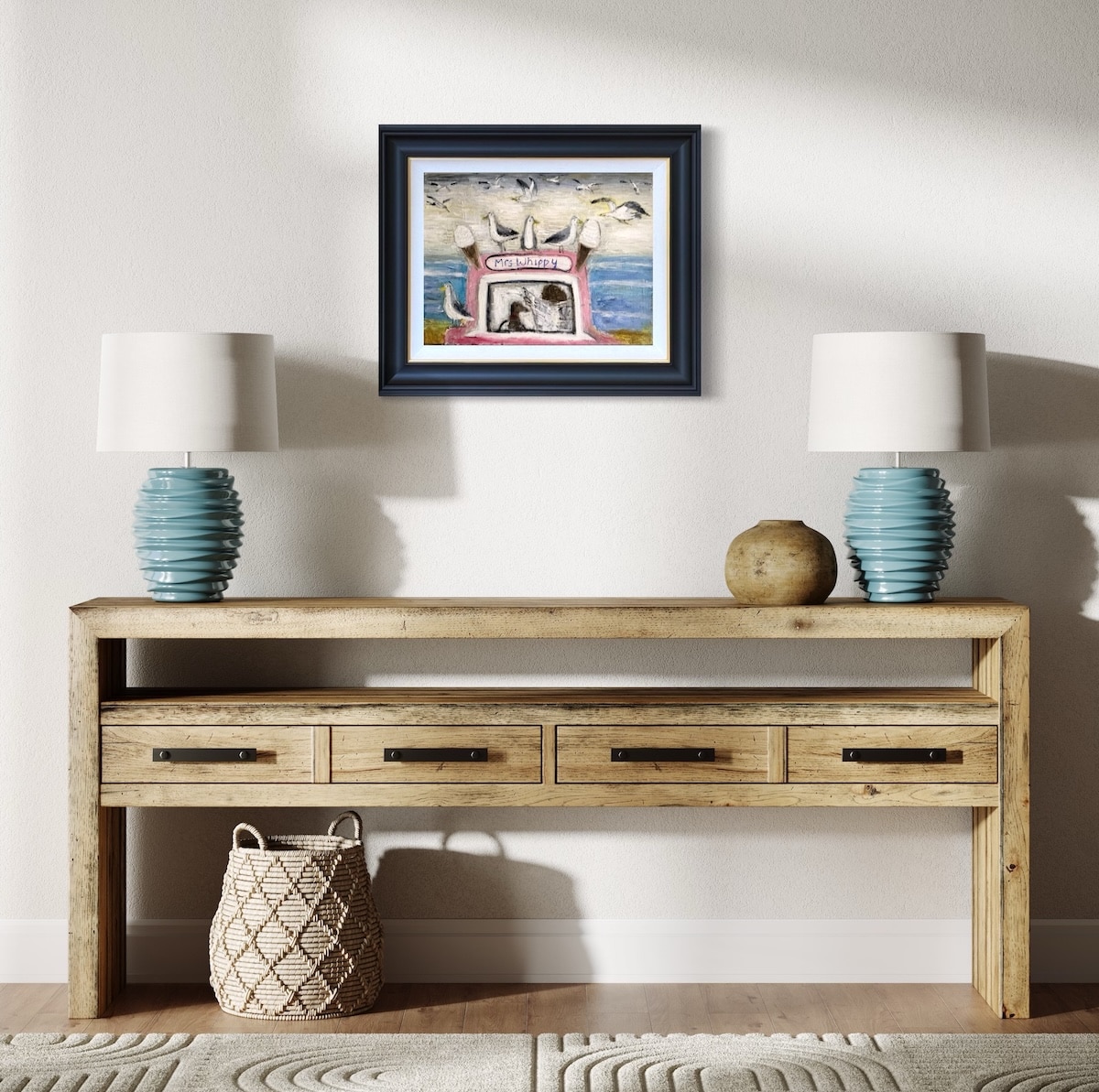 Another incredible painting from Lucy Manfredi’s Christmas series for 2025, a wonderful Mrs Whippy including the curious Daschund.
