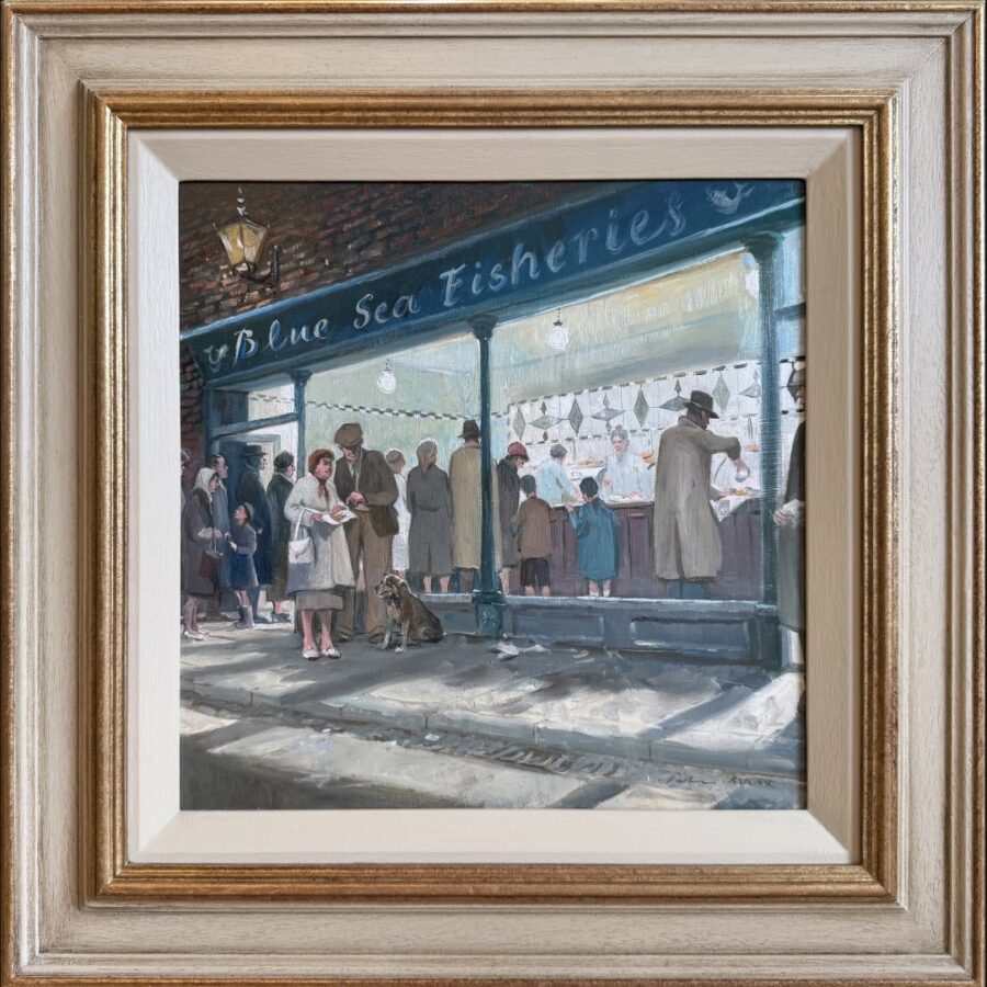 A beautiful original painting by North East artist Peter Knox. Capturing the tradition of British fish and chip shops, an exquisite nostalgia trip by the talented British painter.