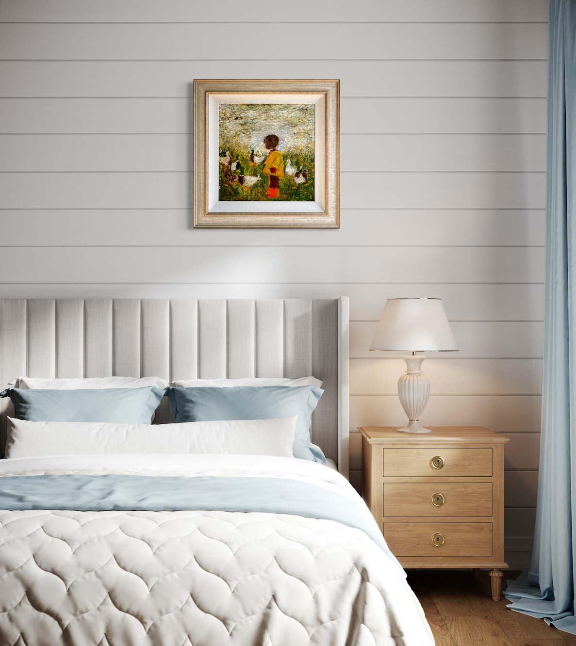 Another delightful figurative painting by artist Lucy Manfredi, a joyous day on the waters edge.