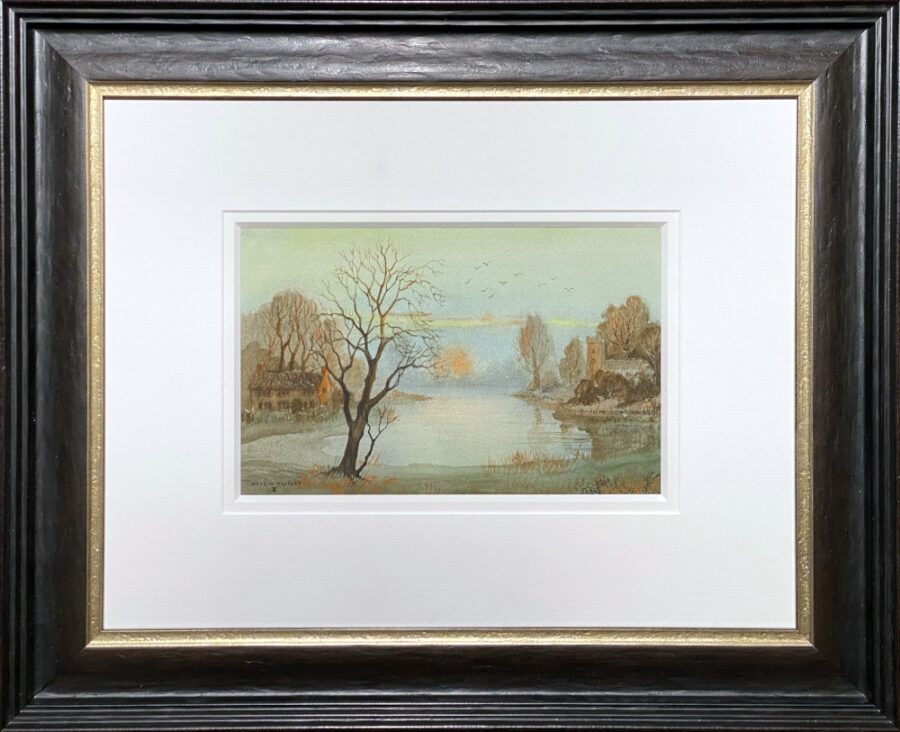 A beautiful and delicate original warercolour painting by Helen Bradley depicting the Mere in Cheshire.