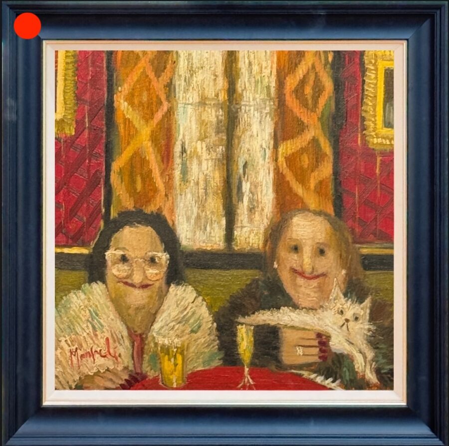 Lucy Manfredi helps us peep into the lives of her fascinating subjects once more, characters that we all recognise from days gone by in snugs, bar and cafes across the north of England.  This original painting is signed by the artist and supplied framed.
