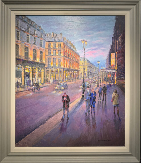 Original oil painting by highly collected Northern artist Reg Gardner. An incredibly atmospheric composition transporting the viewer to the Rue De Rivoli in Paris.