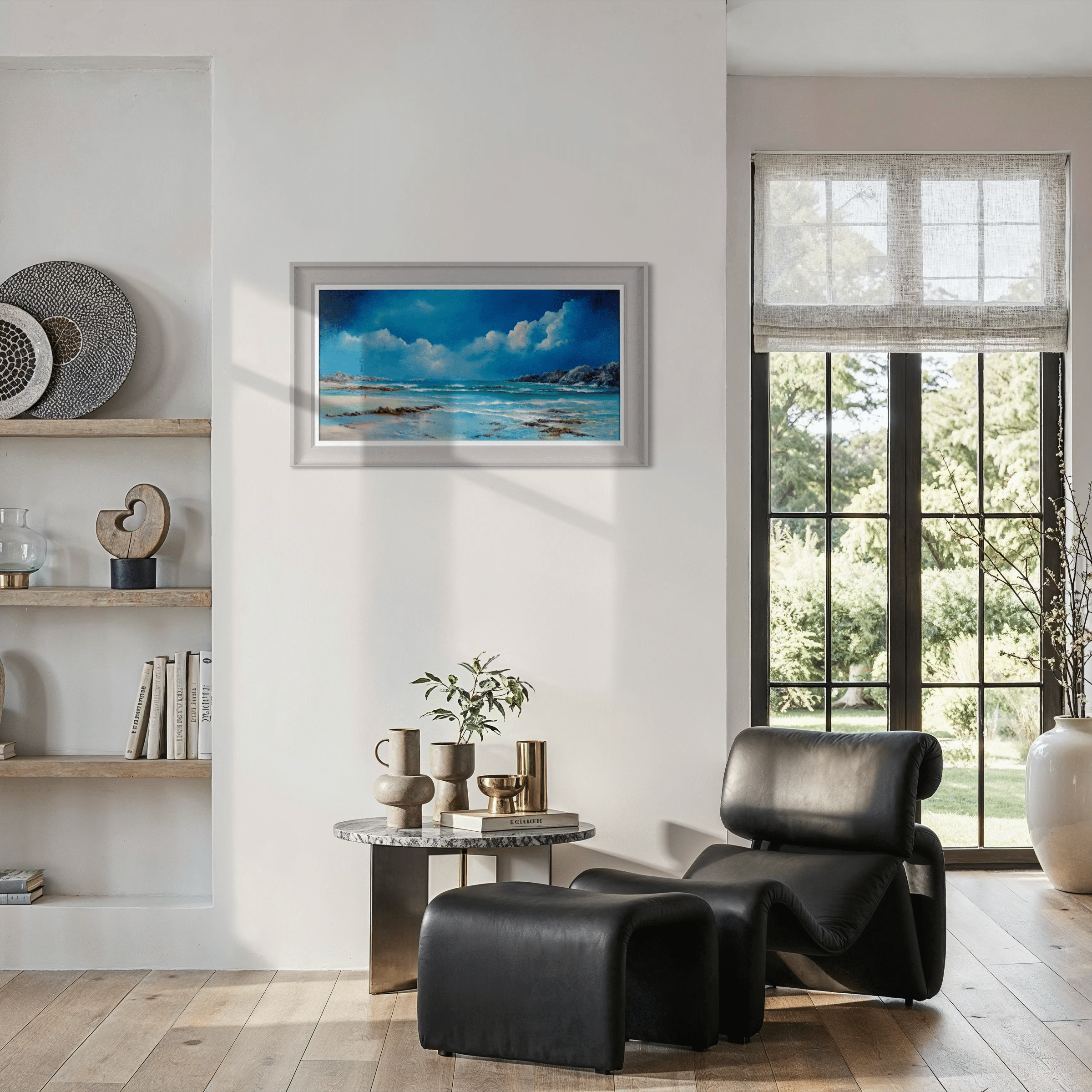 Rich in colour and atmosphere, these works invite the viewer to pause, breathe and momentarily escape, to feel the salt air, the vastness of open water, and the quiet awe of standing before something greater than us. Gray’s captures the raw beauty and vast scale of remote horizons, offering collectors the opportunity to own a deeply personal reflection of the artist’s journey. Offered professionally framed with a certificate of authenticity.
