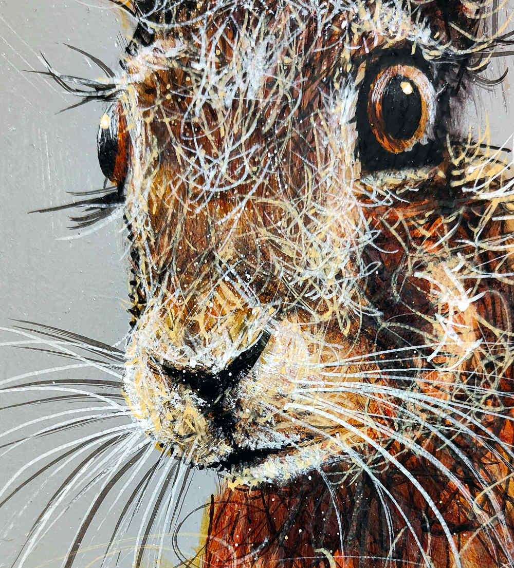 An amazing original painting on board by Lancashire based wildlife artist Ruby Keller of the characterful Hare.