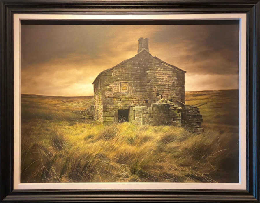 A captivating and mysterious painting capturing once a home, now turned barn upon a rural plain. Painted in Steven Townsend’s recognisable photo realist style, he really captures the essense and wonder of this building, making you feel as you want to walk up to, and explore it. Painted in acrylics on canvas, the painting is beautifully framed and signed by Steven Townsend.