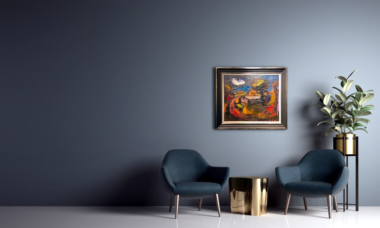 Painted with bold colours and heavy impasto oils, this incredible composition holds such a powerful presence on any wall.