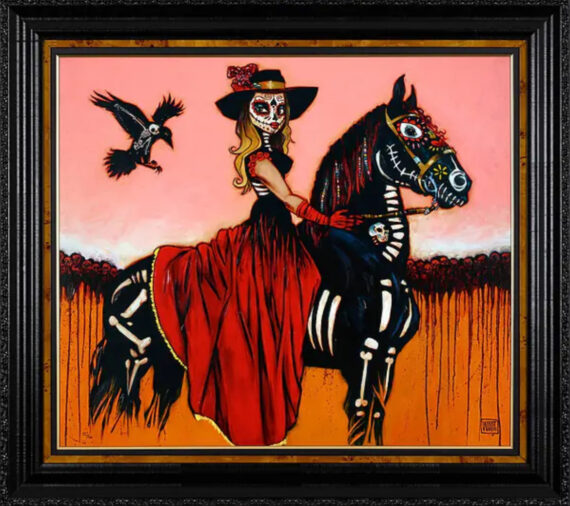 Todd White’s Day of the Dead series of paintings have long been one of his most popular subject matters and this new edition takes the genre to a new level.  Not only does the central female character get the Day of the Dead treatment but the incredible hors and bird also join in the party.  Set against a backdrop of skulls and a clever almost Rothko style background, this is a true statement piece amongst any Todd White collection.  From an edition of only 50 examples, contact the gallery now to secure your copy.
