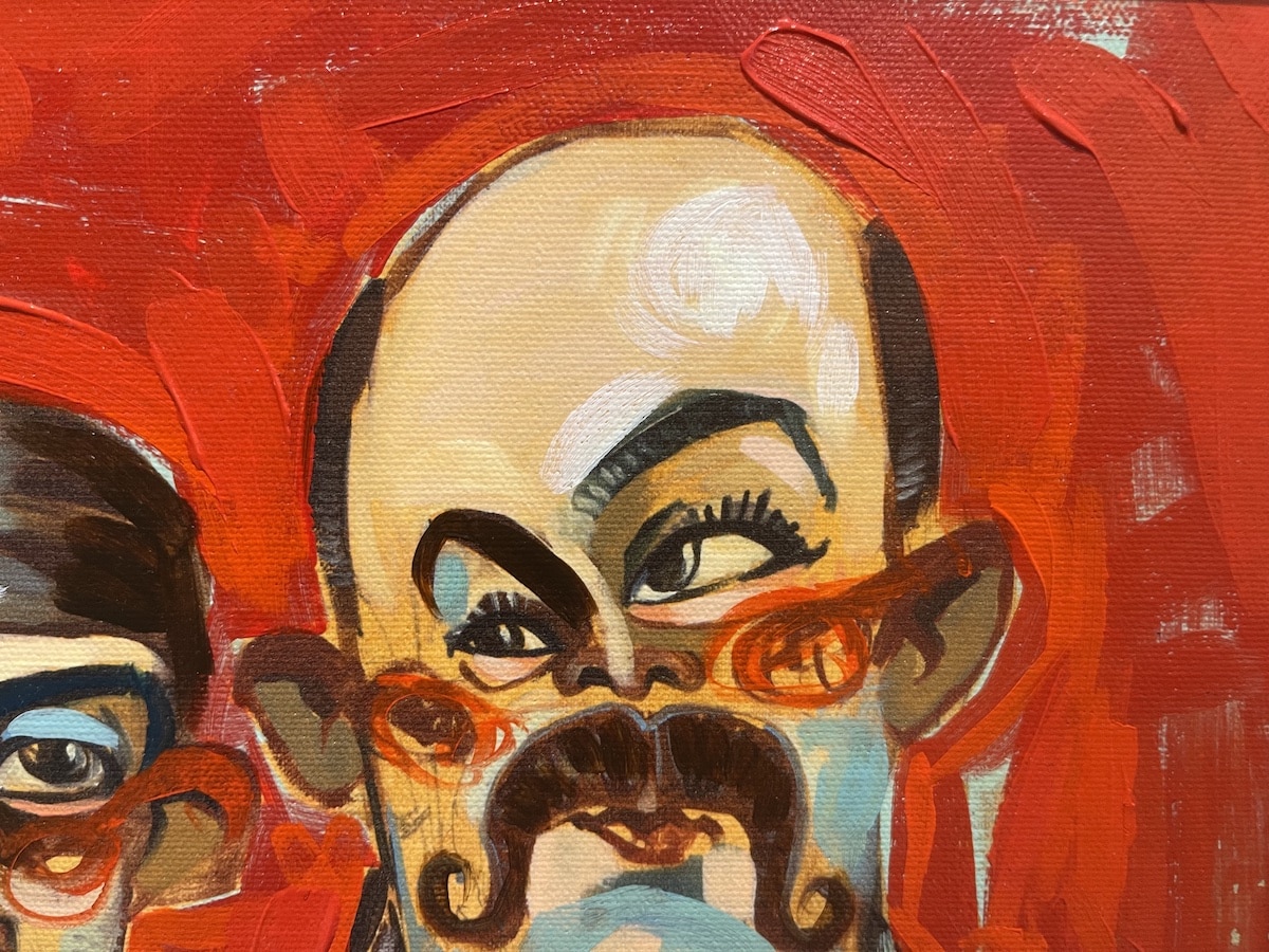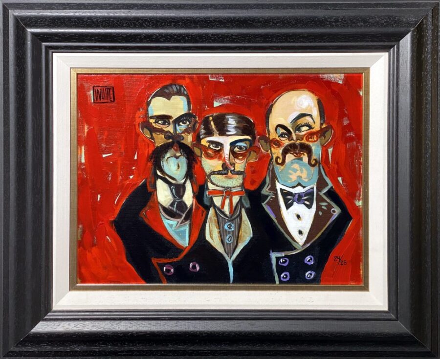 A truly unique piece by the hit US artist Todd White. Inspired by Todd White’s experiences with a number of unscrupulous individuals throughout his career, this painting depicts these characters in all of their untrustworthy glory.