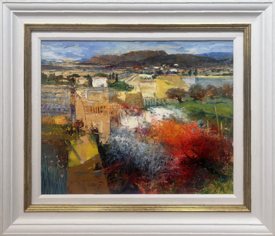 An exquisite original Italian landscape painting by artist Mario Malfer. Executed in Malfer’s unique semi abstract style, this beautiful painting is offered professionally framed and signed by the artist.